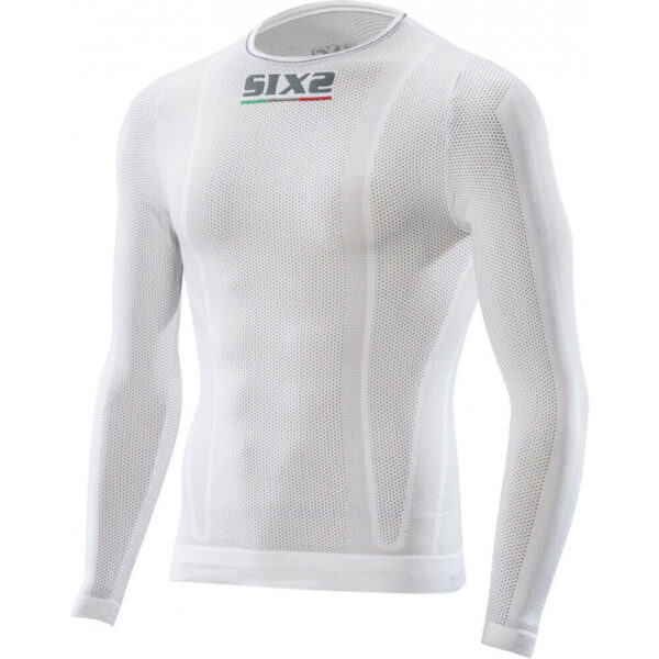 Dětské SIXS funkční tričko s dlouhým rukávem a kulatým výstřihem pro celoroční použití při všech sportech, za všech klimatických podmínek. Tričko je určeno pro použití v kontaktu s pokožkou, pod dalším sportovním oblečením. Díky termoregulačním vlastnostem patentovaného materiálu SIXS Carbon Underwear® reguluje pocení, udržuje pokožku v suchu, působí proti vzniku zápachu a umožňuje dosažení efektivního svalového výkonu při minimalizaci rizika svalového zranění. Materiál současně zajišťuje přenos tepla a má antistatické vlastnosti, které chrání tělo před elektrickým nábojem způsobeným třením více syntetických tkanin o sebe, což je pro sportovní oblečení typické.